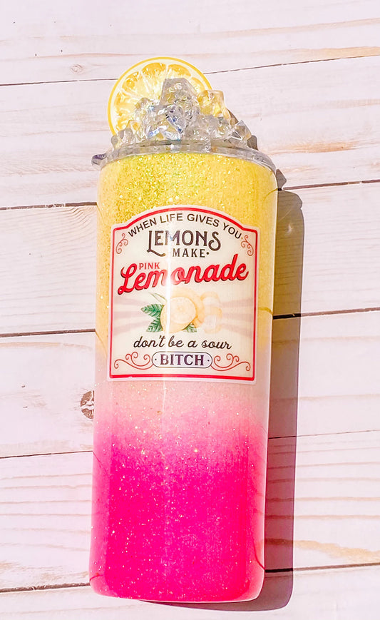 3D Pink Lemonade glitter tumbler + stainless steel + lemonade + resin tumbler