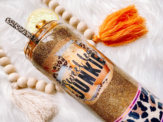 3D Sweet tea Junkie glitter tumbler + stainless steel + lemonade + resin tumbler