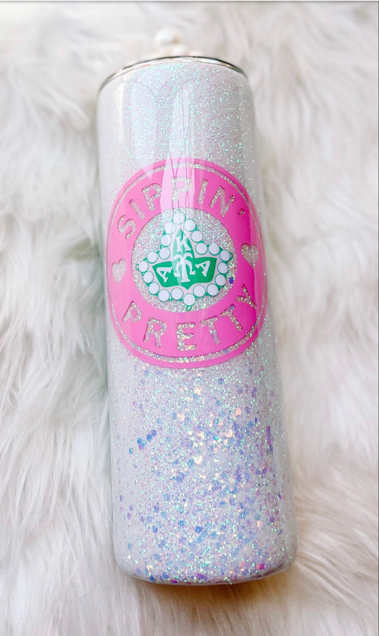 Alpha Kappa Alpha-AKA side pearled tumbler