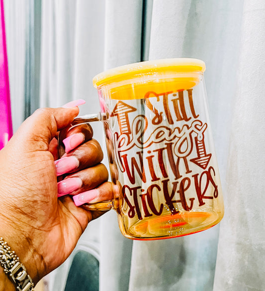 17oz glass mug with lid and handle.