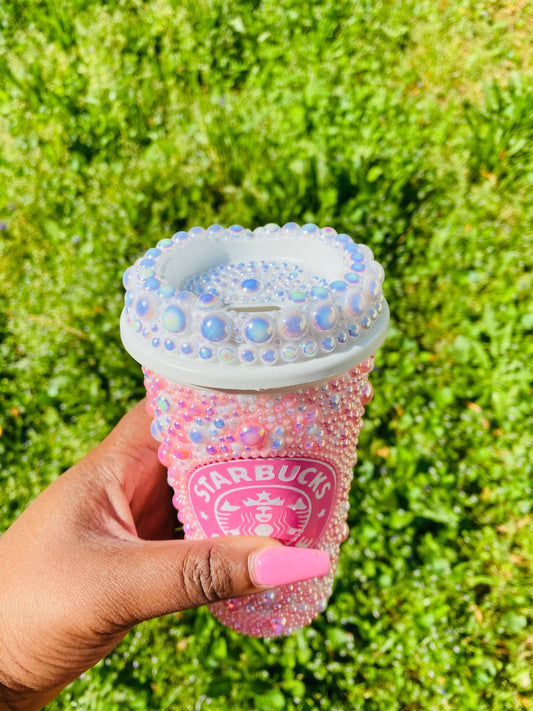 Custom hand pearled Starbucks hot cup bedazzled
