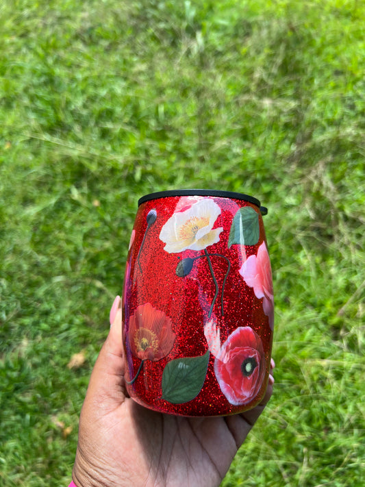 Sold outRed floral glittered mug