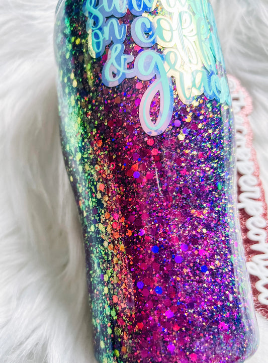 Surviving on coffee and grace| faith tumbler | Glitter tumbler